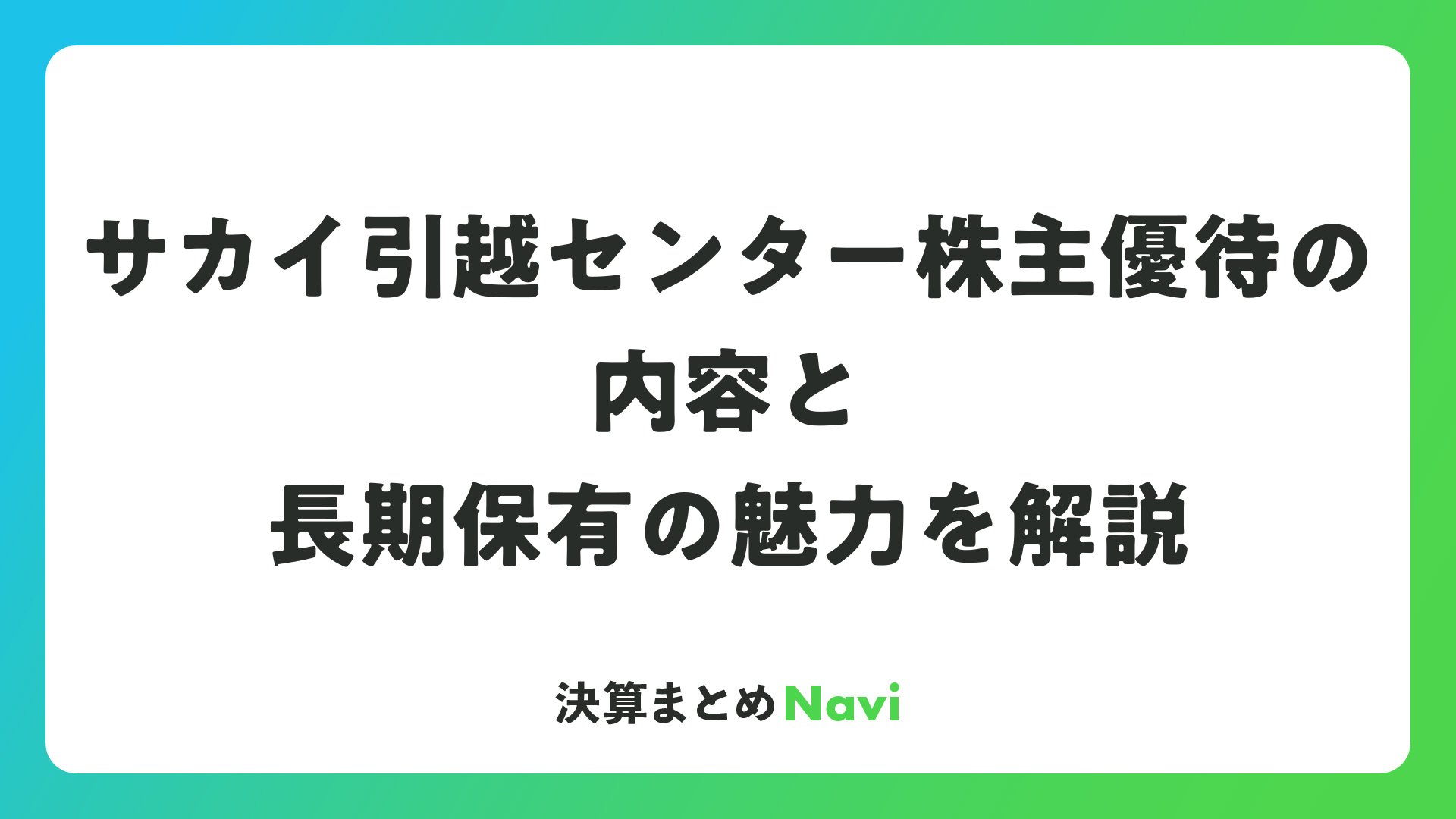 サカイ引越センター株主優待の内容と長期保有の魅力を解説をまとめました