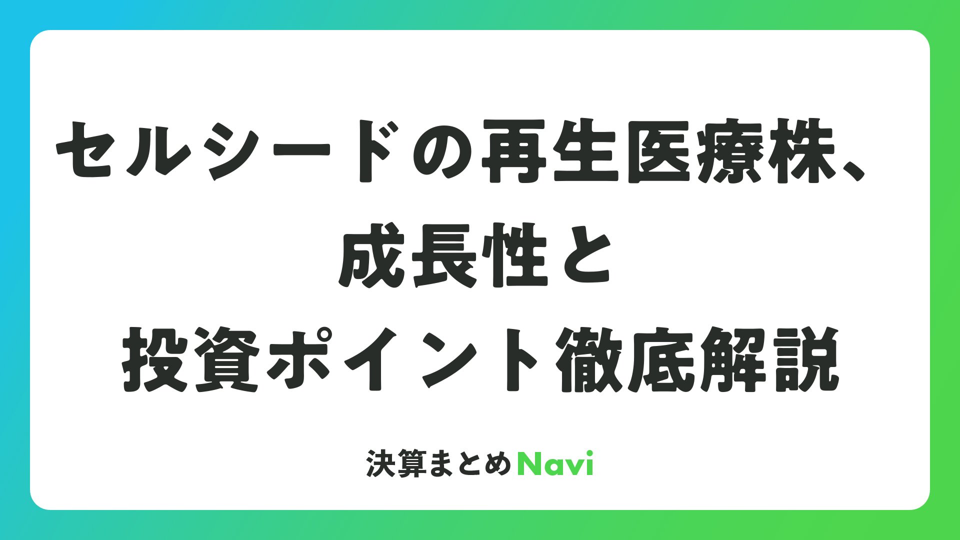 セルシードは、細胞シート工学という日本発の革新的技術を武器に、再生医療市場で独自のポジションを築いています。財務の安定基盤と成長ポテンシャルを兼ね備え、長期投資家にとって魅力的な選択肢です。株価変動をチャンスと捉え、戦略的にアプローチすれば、資産運用の成果が期待できます。