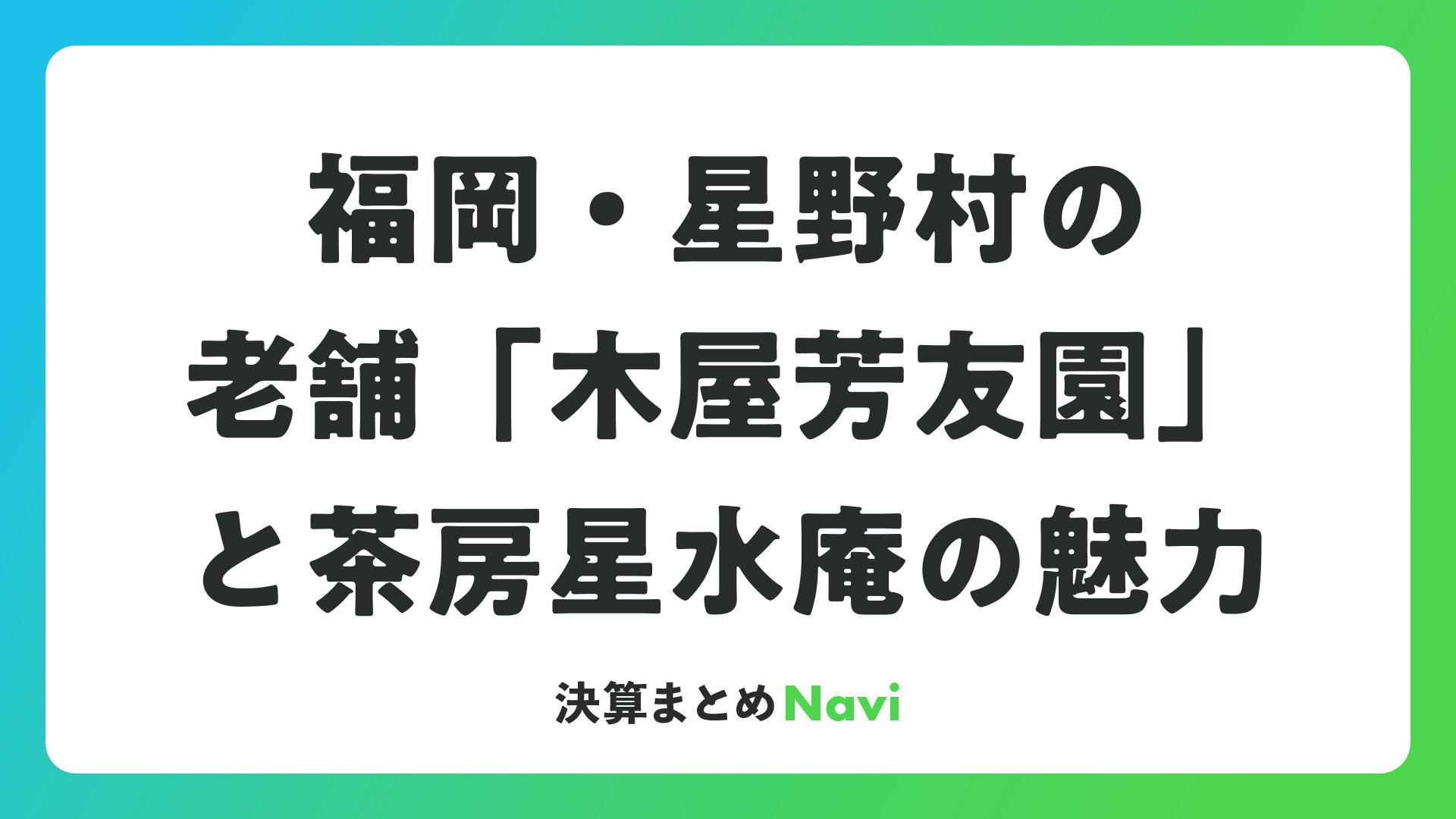 福岡・星野村の老舗「木屋芳友園」と茶房星水庵の魅力をまとめました