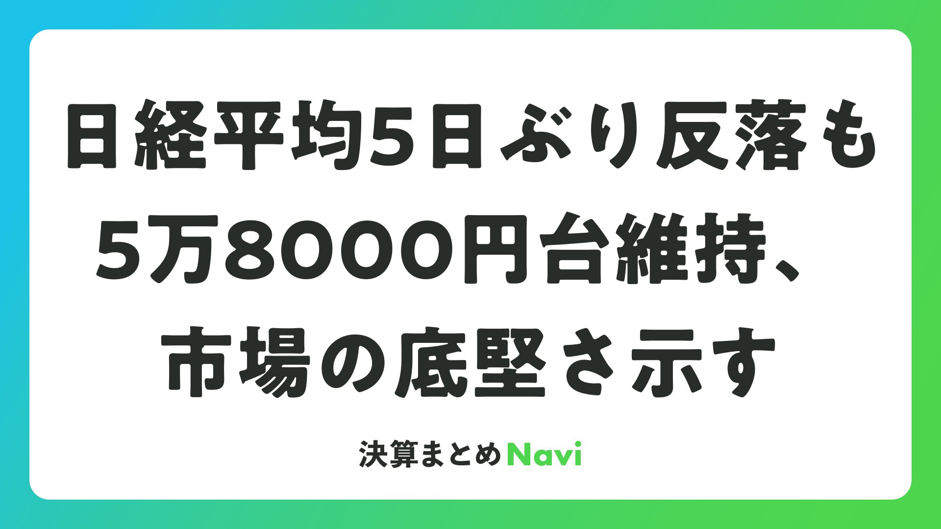 日経平均5日ぶり反落も5万8000円台維持、市場の底堅さ示すをまとめました