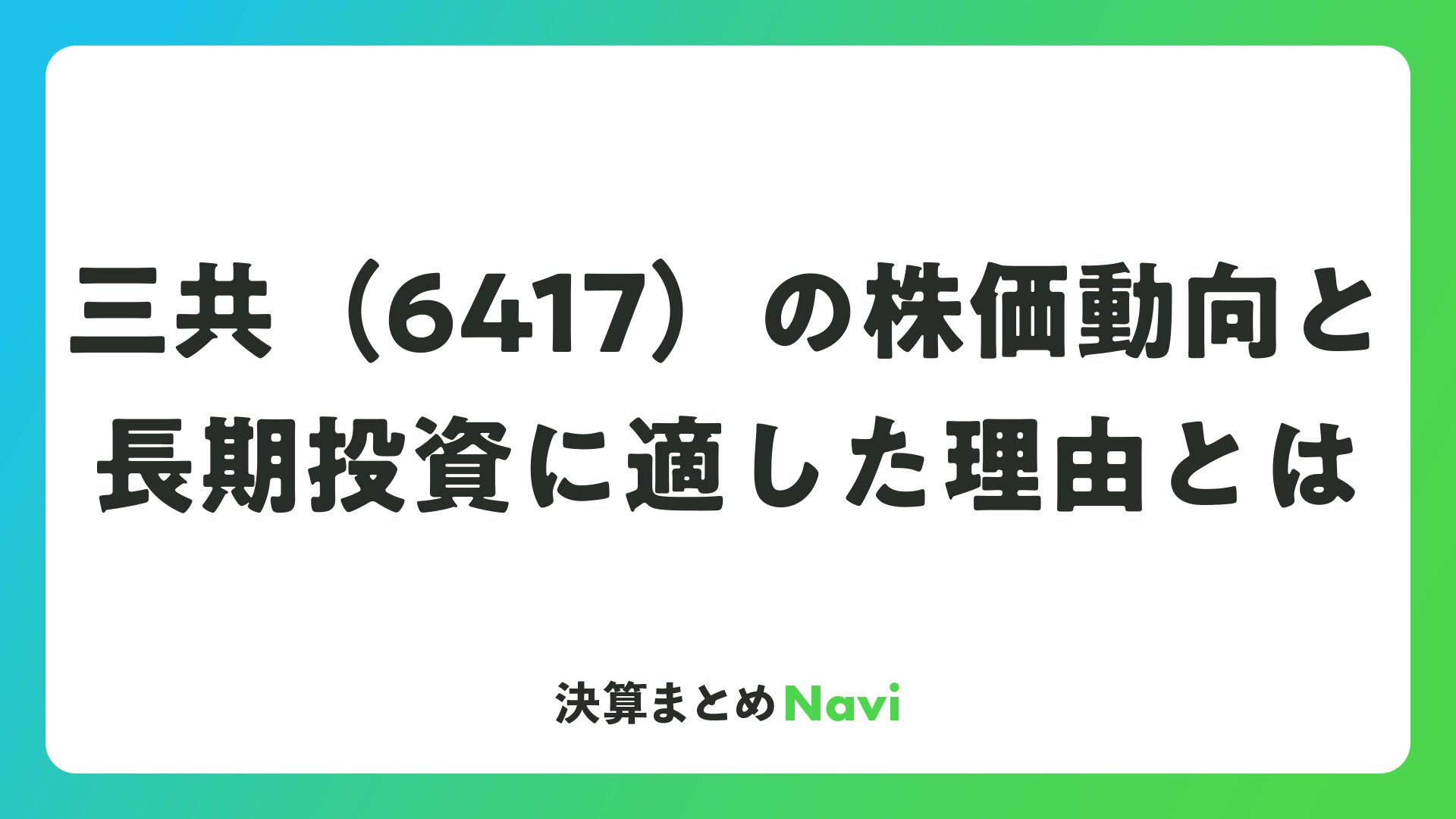 三共(6417)の株価動向と長期投資に適した理由とはをまとめました