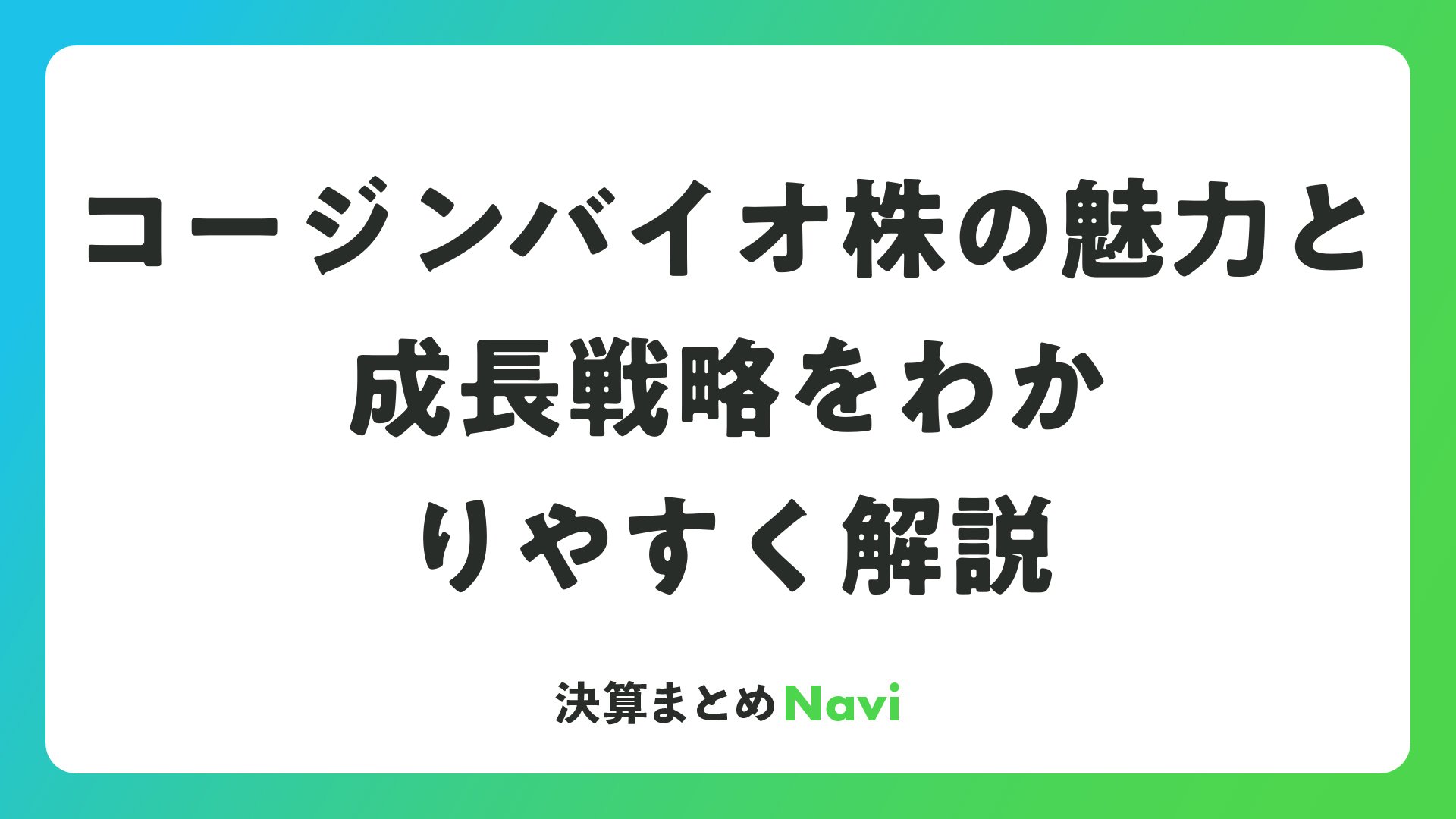 コージンバイオ株の魅力と成長戦略をわかりやすく解説をまとめました