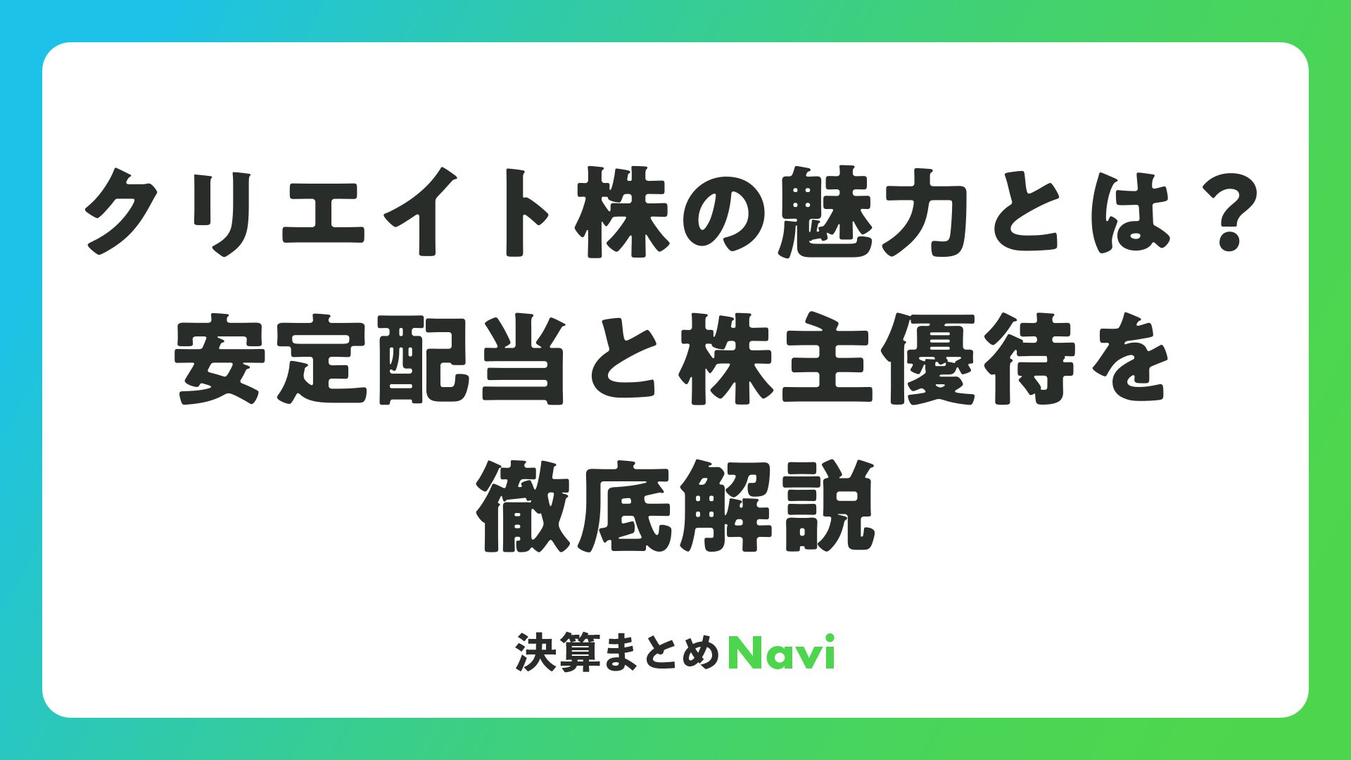 クリエイト株の魅力とは?安定配当と株主優待を徹底解説をまとめました