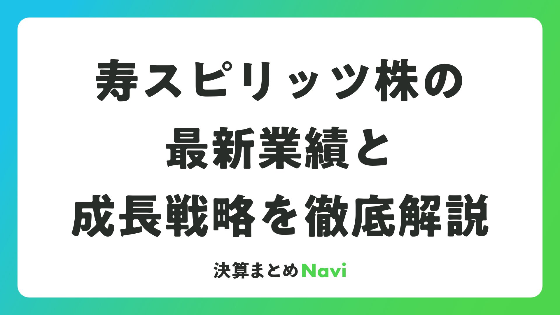 寿スピリッツ株の最新業績と成長戦略を徹底解説をまとめました