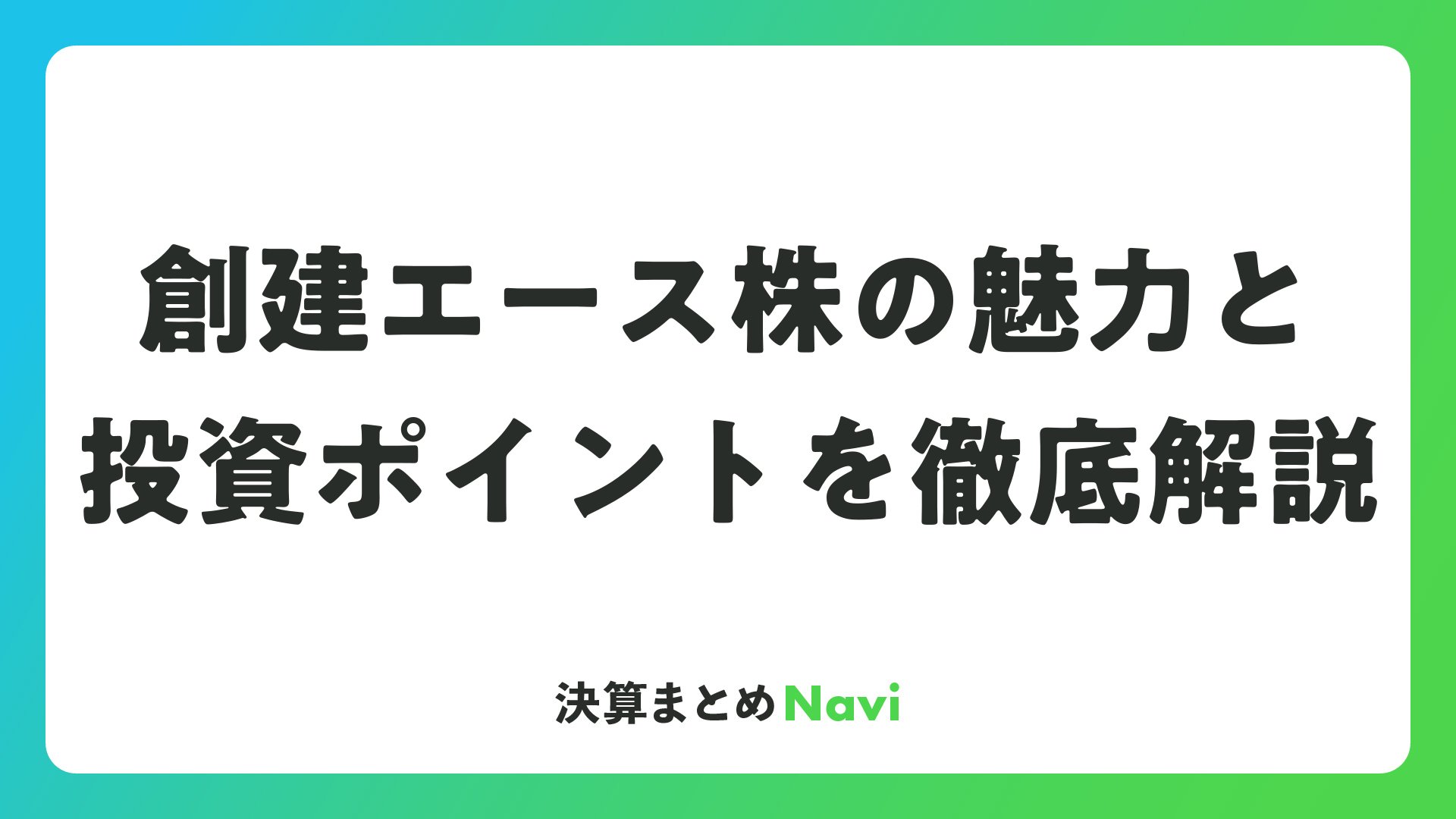創建エース株の魅力と投資ポイントを徹底解説をまとめました