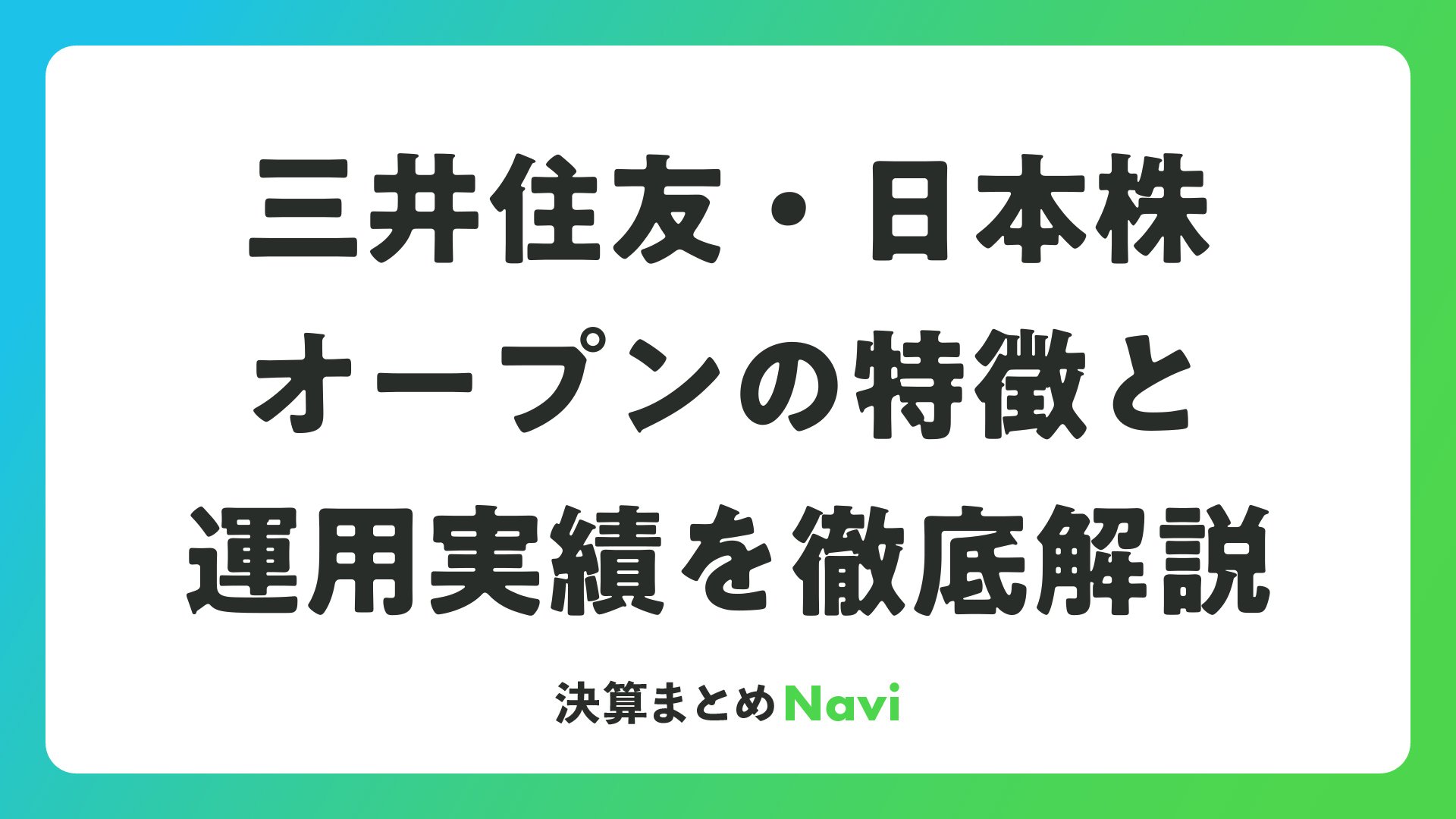 三井住友・日本株オープンの特徴と運用実績を徹底解説をまとめました
