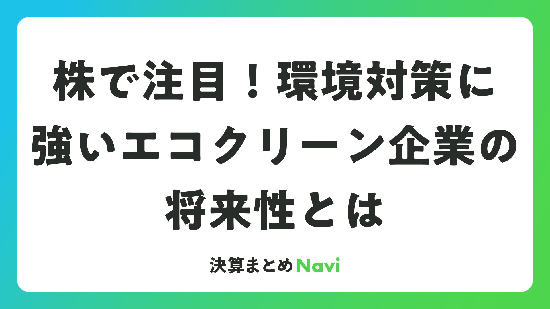 株で注目!環境対策に強いエコクリーン企業の将来性とはをまとめました
