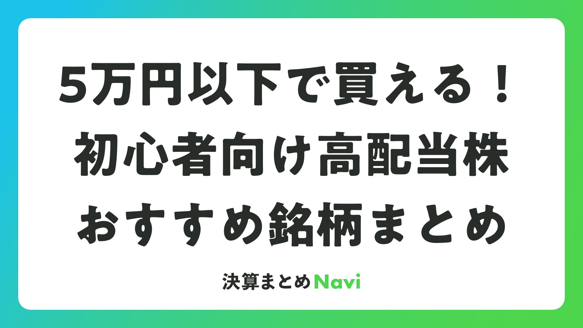 株式投資を始める上で、5万円以下で購入可能な高配当株は、少額から配当収入を得られる魅力的な選択肢です。これらの銘柄は、安定した事業基盤を持ちながら、投資家に高い利回りを約束するものが多く、資産運用の第一歩として最適です。本記事では、こうした低価格高配当株の利点や投資のポイントを詳しく解説し、読者の皆さんが自信を持って投資判断を下せるようサポートします。
