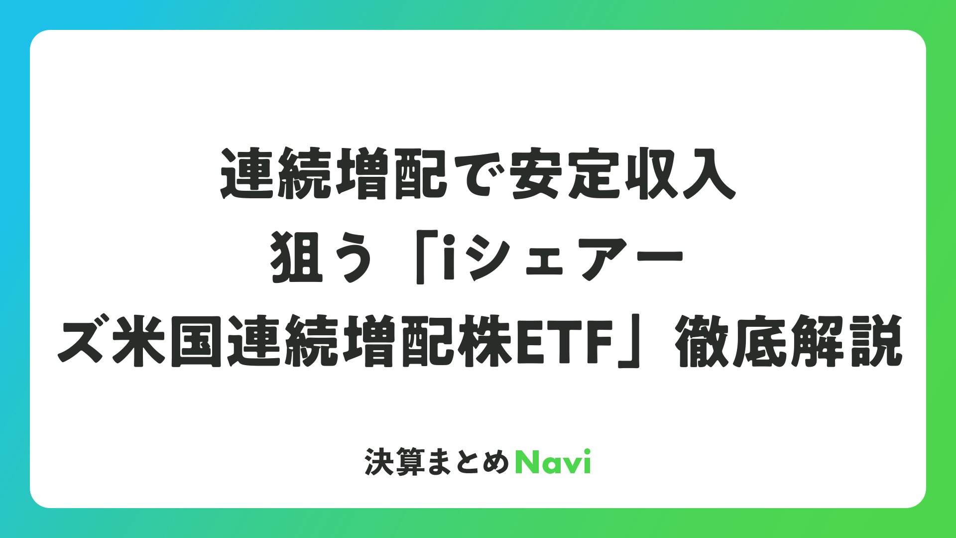 連続増配で安定収入狙う「iシェアーズ米国連続増配株ETF」徹底解説をまとめました