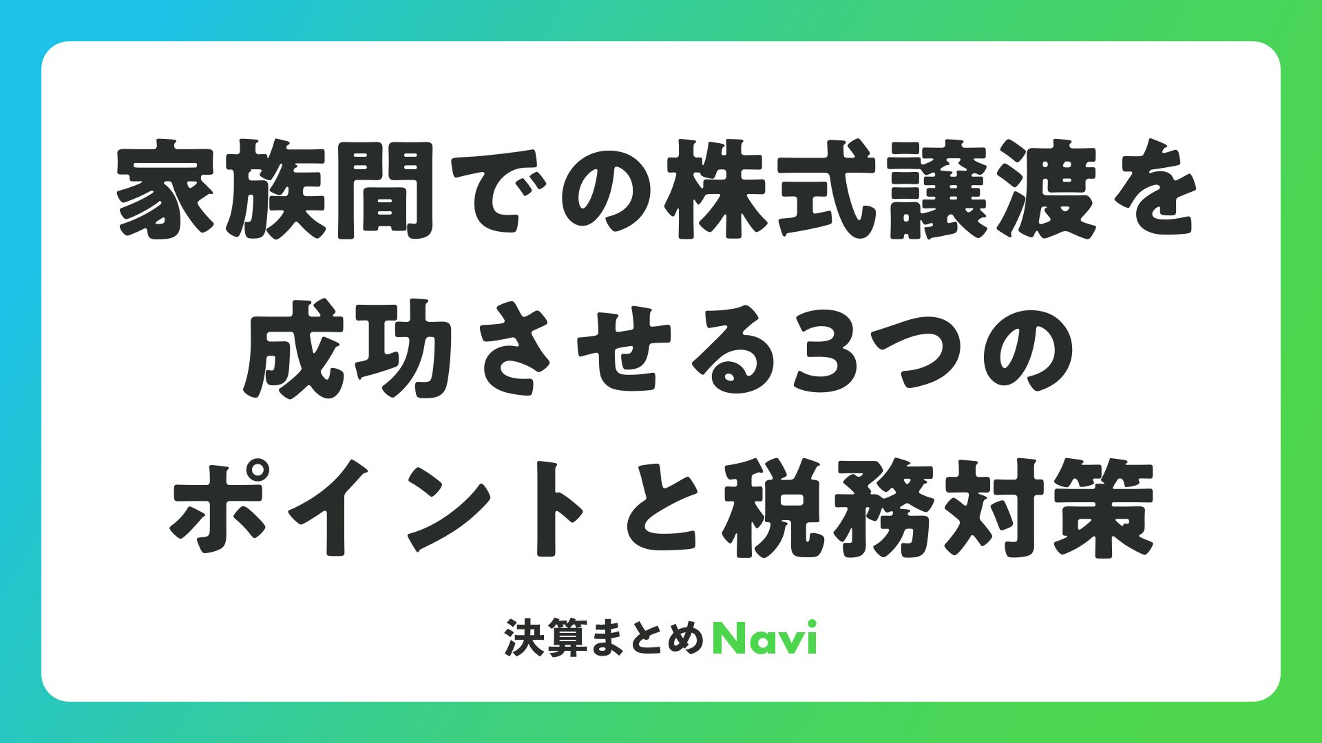 家族間での株式譲渡を成功させる3つのポイントと税務対策をまとめました