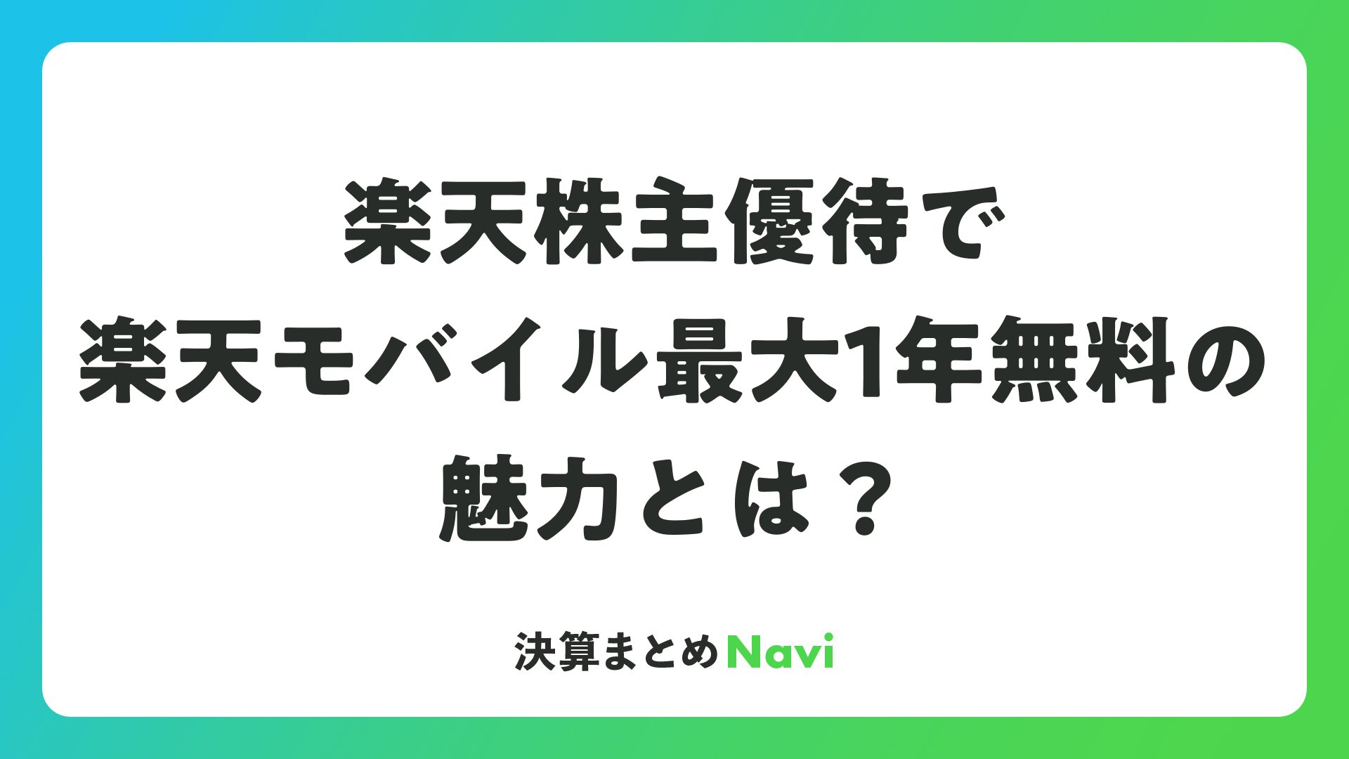 楽天株主優待で楽天モバイル最大1年無料の魅力とは?をまとめました