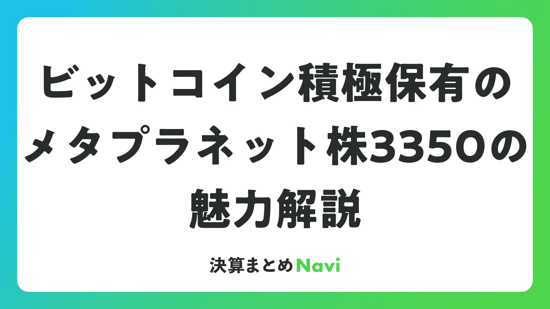ビットコイン積極保有のメタプラネット株3350の魅力解説をまとめました