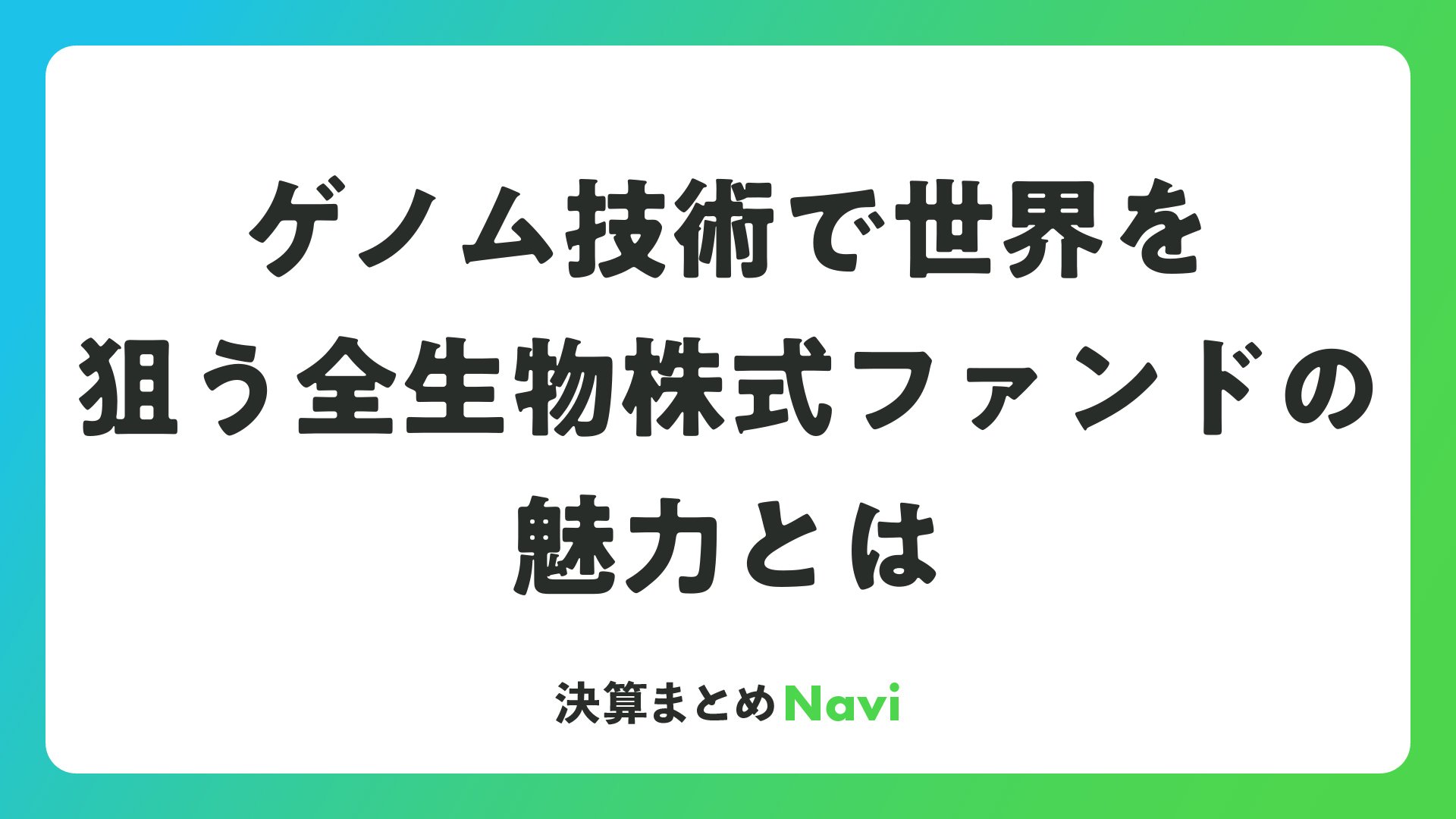ゲノム技術で世界を狙う全生物株式ファンドの魅力とはをまとめました