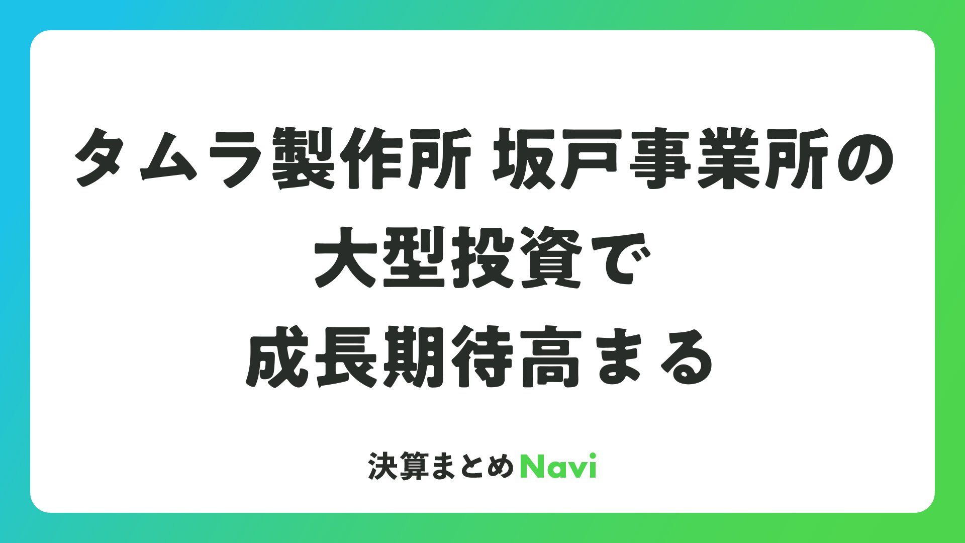 タムラ製作所 坂戸事業所の大型投資で成長期待高まるをまとめました