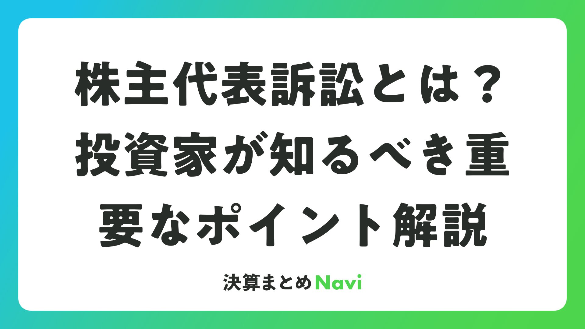 株式投資を行う上で、企業のガバナンスや役員の責任について理解することは極めて重要です。その中で株主代表訴訟は、株主が会社の利益を守るための強力なツールとして機能します。この記事では、株式投資・資産運用メディアの読者向けに、株主代表訴訟の概要から手続き、投資家としての活用ポイントまでを詳しく解説します。企業の健全性を高め、長期的な資産運用を支える知識としてお役立てください。
