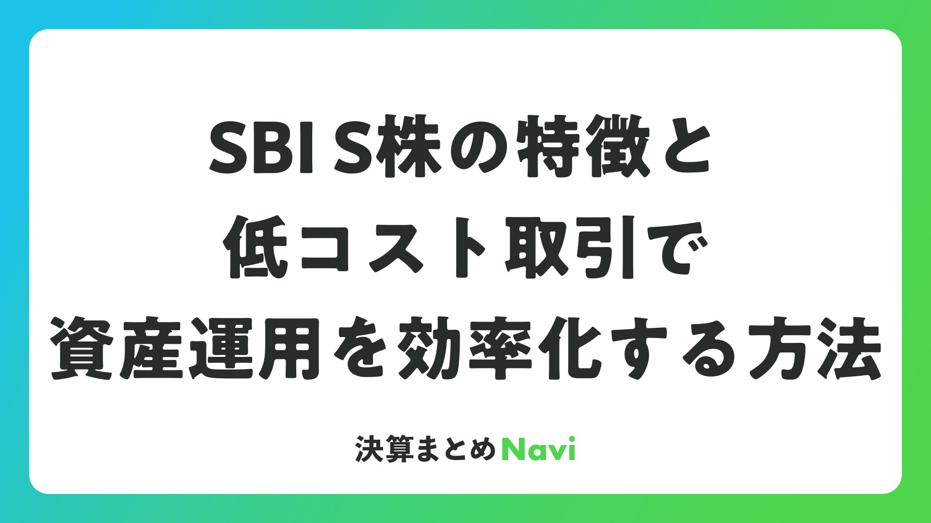 SBI S株の特徴と低コスト取引で資産運用を効率化する方法をまとめました