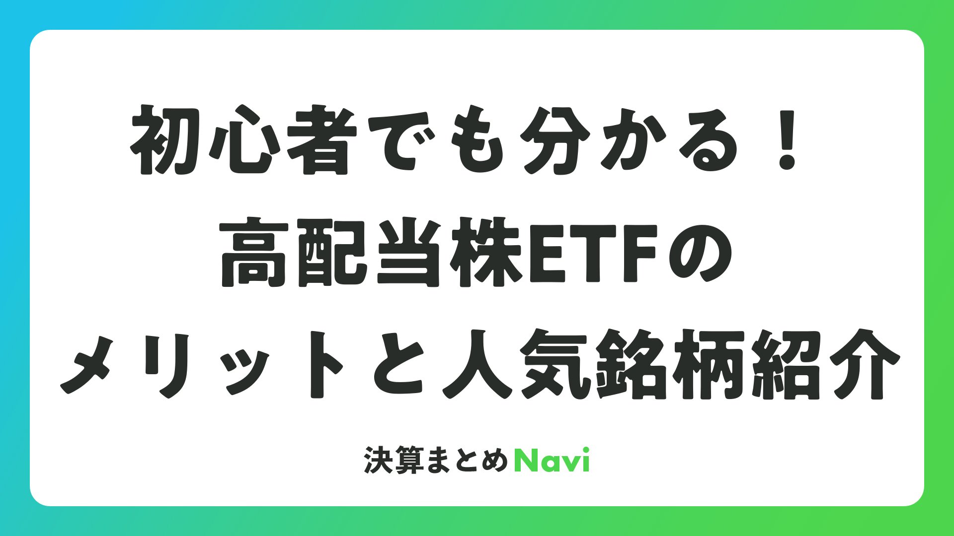 初心者や安定志向の投資家には、高配当株ETFがお勧めです。