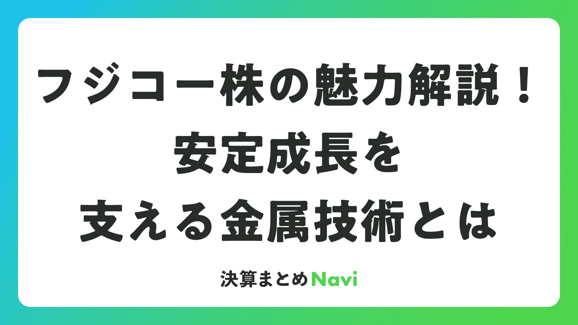 フジコー株の魅力解説!安定成長を支える金属技術とはをまとめました