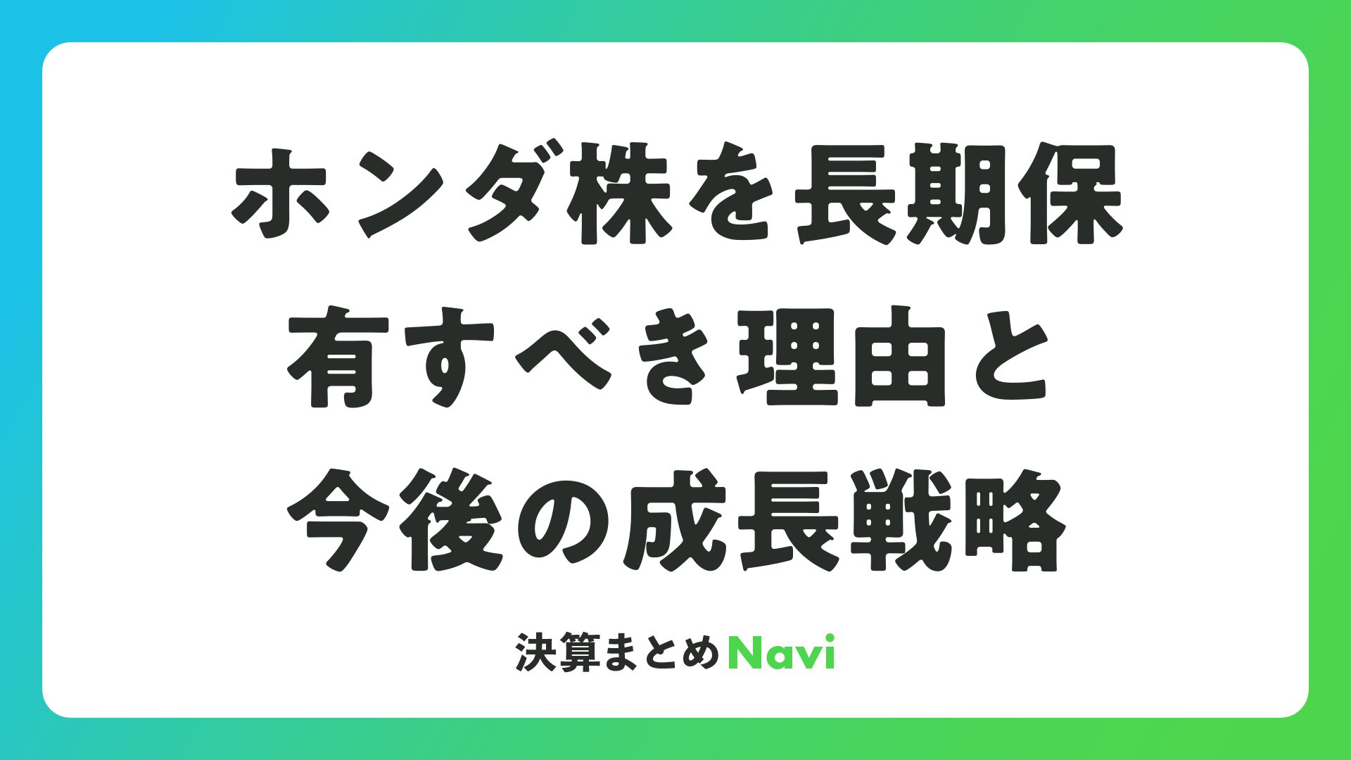 ホンダ株を長期保有すべき理由と今後の成長戦略をまとめました