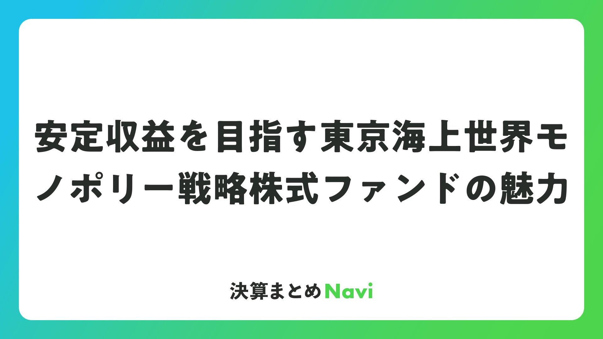 安定収益を目指す東京海上世界モノポリー戦略株式ファンドの魅力をまとめました
