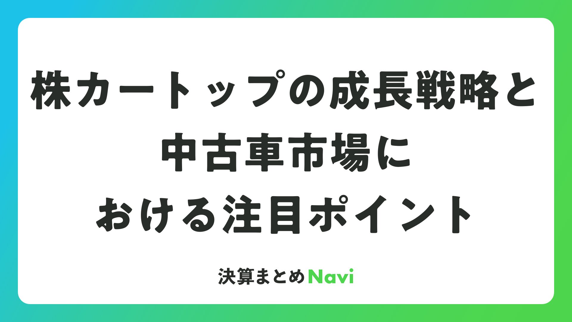 株カートップの成長戦略と中古車市場における注目ポイントをまとめました