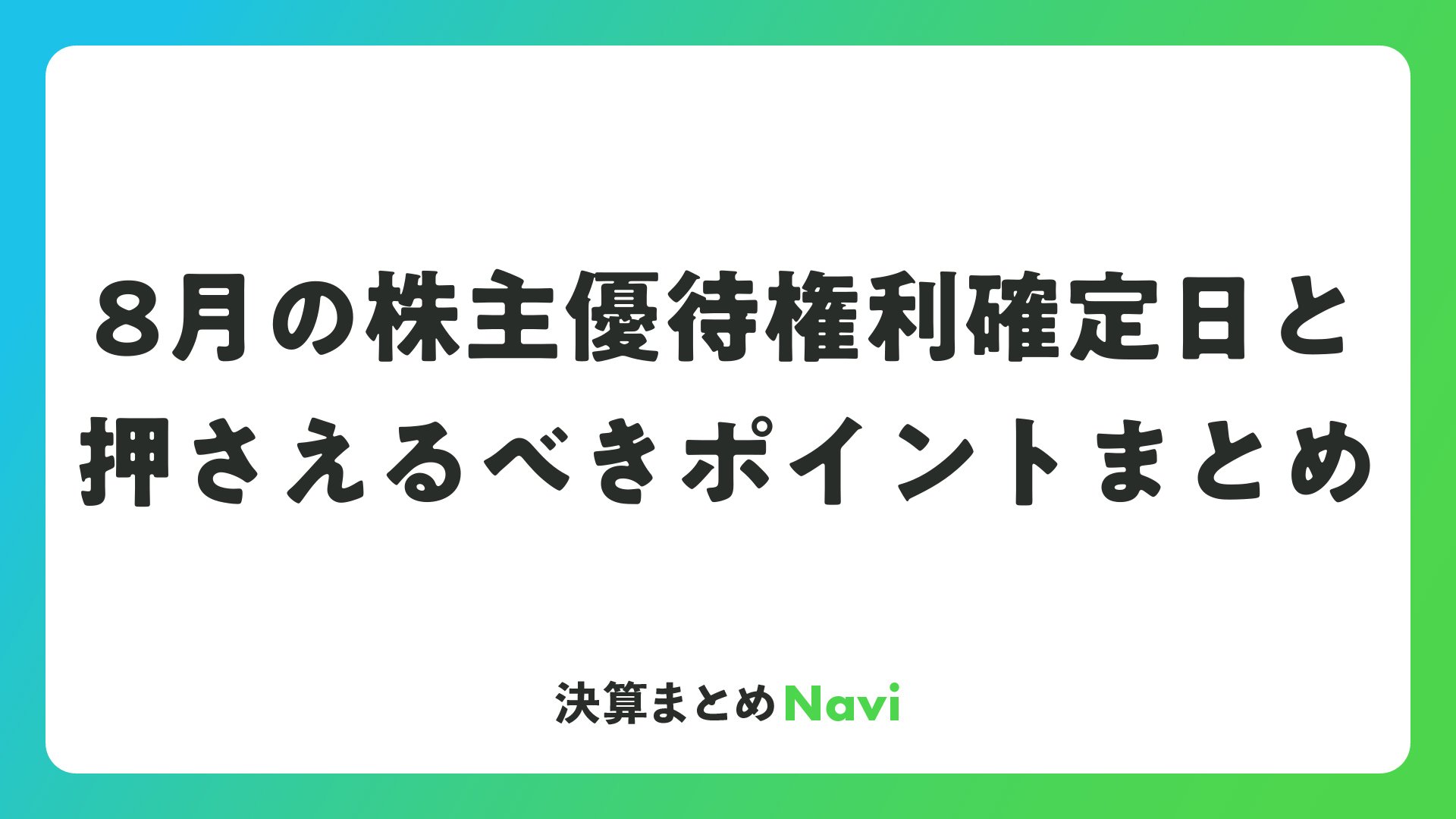 8月の株主優待権利確定日と押さえるべきポイントまとめをまとめました