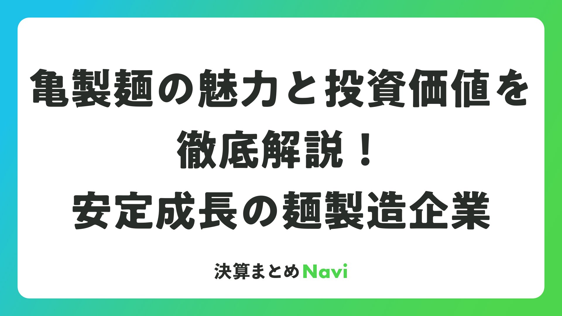 亀製麺の魅力と投資価値を徹底解説!安定成長の麺製造企業をまとめました