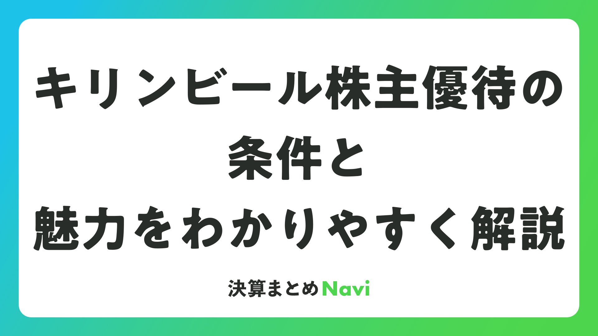 キリンビール株主優待の条件と魅力をわかりやすく解説をまとめました