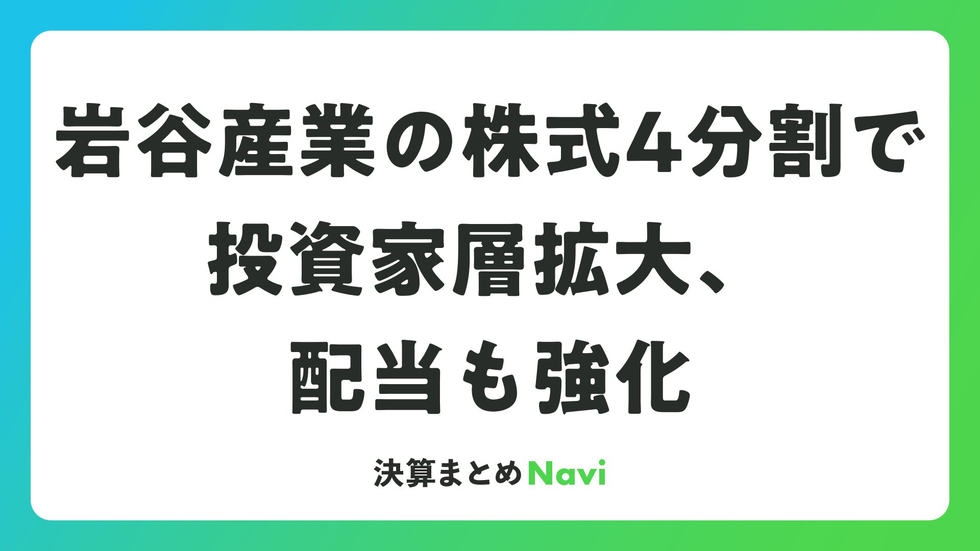 岩谷産業の株式分割は、投資家にとって大きなチャンスを提供します。2024年10月1日効力発生の4:1分割により、株価が調整され、流動性と参加しやすさが向上。併せて強化された配当政策(2026年3月期年間47円)が、長期保有の魅力を高めています。エネルギー事業の成長を背景に、安定リターンを期待できる優良銘柄です。資産運用を考える投資家は、ぜひ注目を。