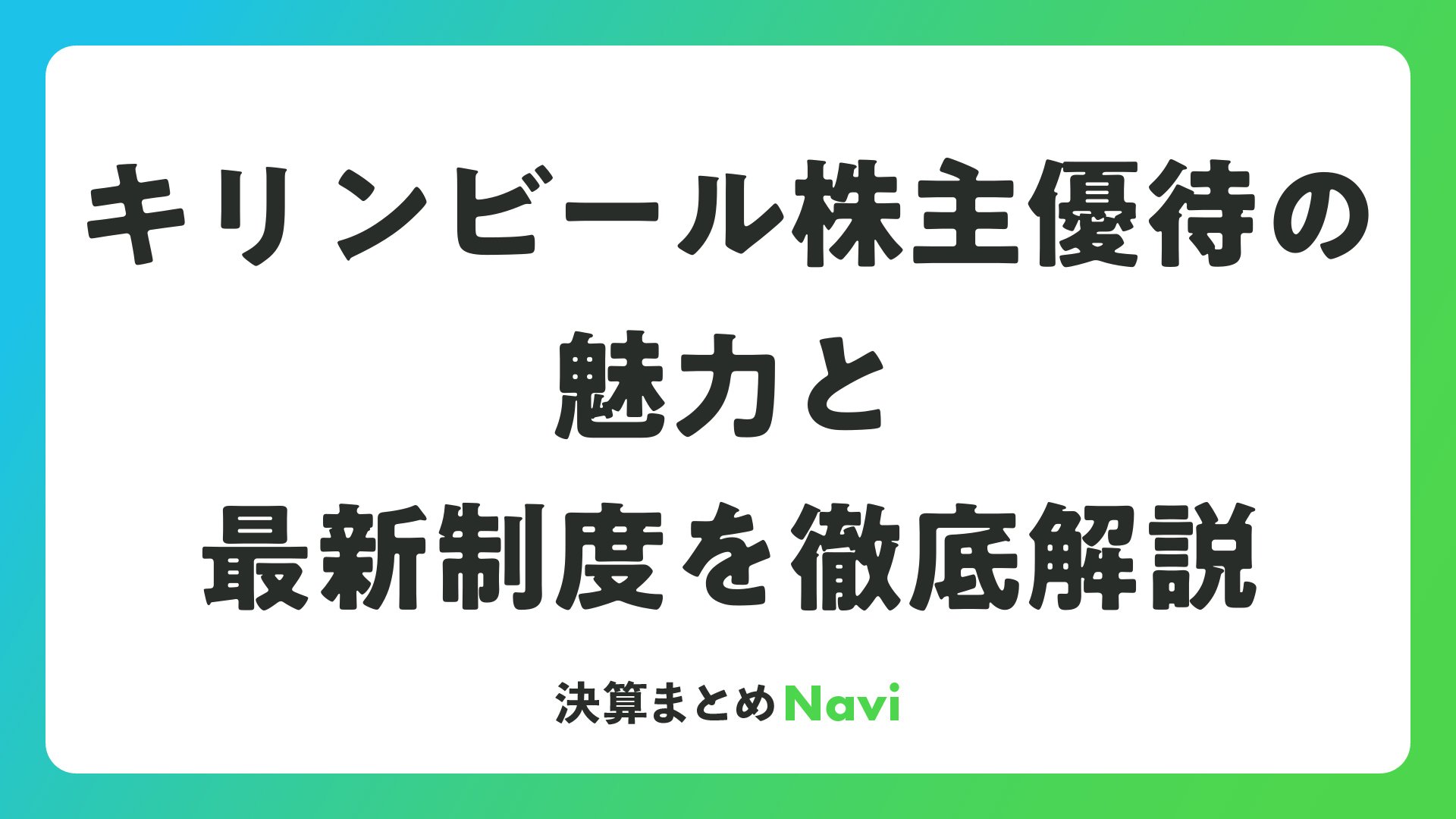 キリンビール株主優待の魅力と最新制度を徹底解説をまとめました