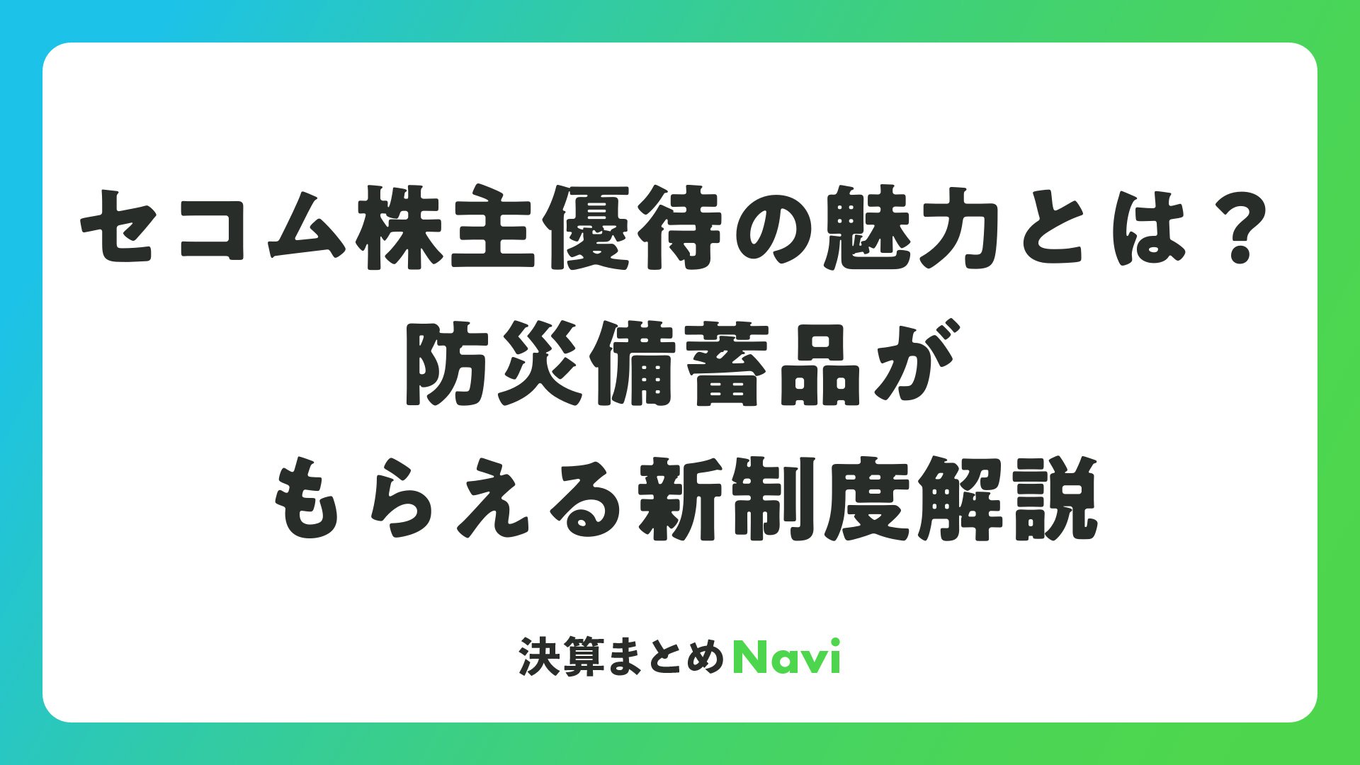 セコム株主優待の魅力とは?防災備蓄品がもらえる新制度解説をまとめました