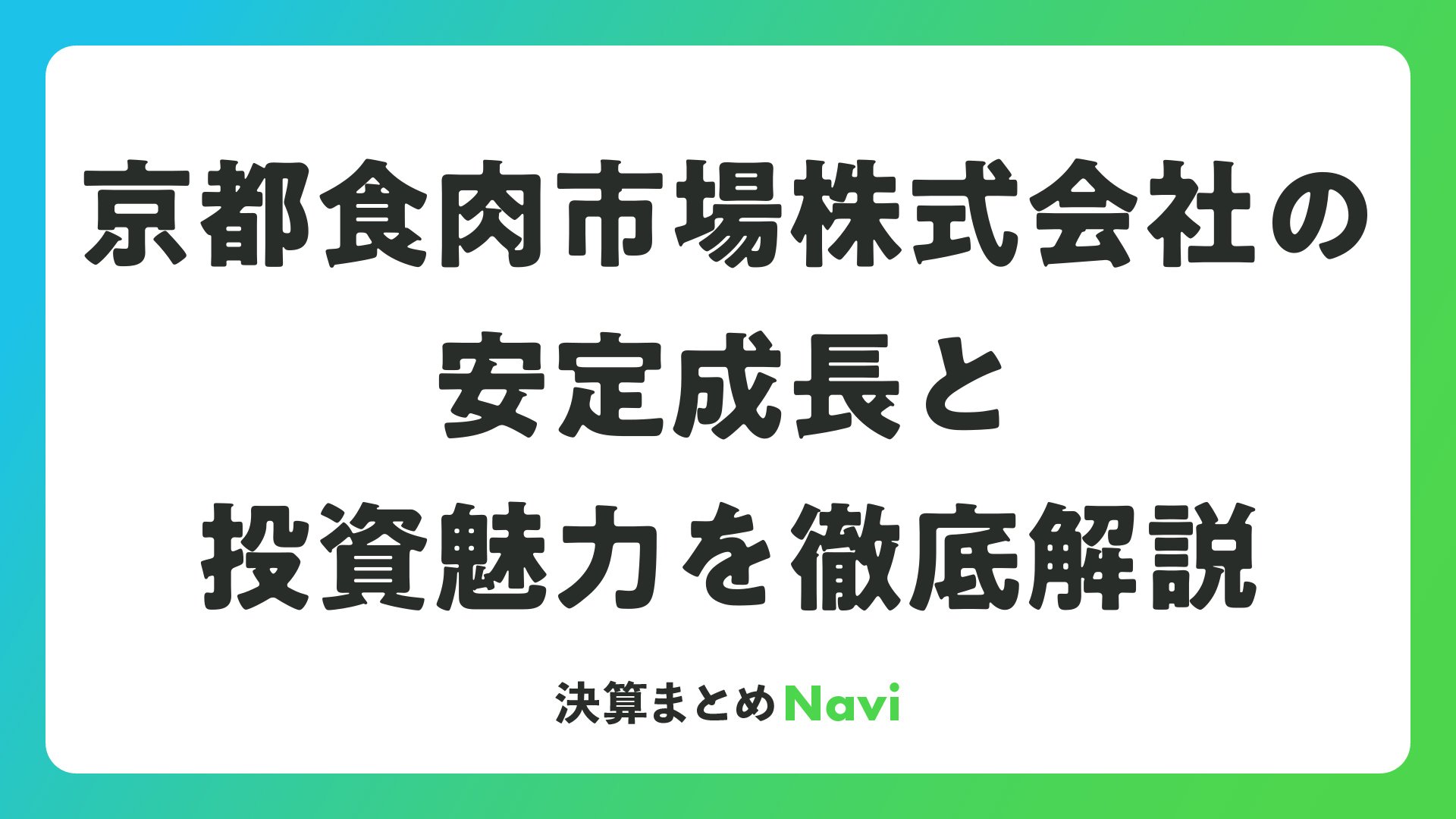 京都食肉市場株式会社の安定成長と投資魅力を徹底解説をまとめました