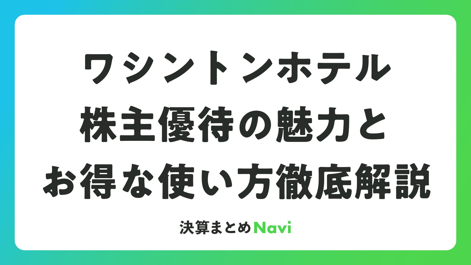 株式投資家にとって、配当金だけでなく株主優待は魅力的なリターンです。特に、ワシントンホテル株式会社の株主優待は、日常の宿泊や飲食を割引で楽しめる実用性の高い内容で、多くの投資家から支持を集めています。この記事では、ワシントンホテルの株主優待の詳細、利用方法、投資視点でのメリットを徹底解説します。ホテル利用を頻繁にする投資家は、ぜひ保有を検討してください。