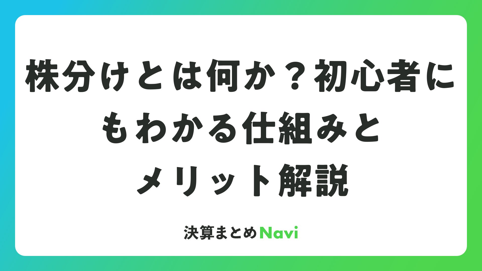 株分け自体に税金は発生しません。株主価値が変わらないため、非課税イベントです。ただし、分割後の売却益には譲渡所得税がかかります。NISA活用で非課税メリットを最大化しましょう。