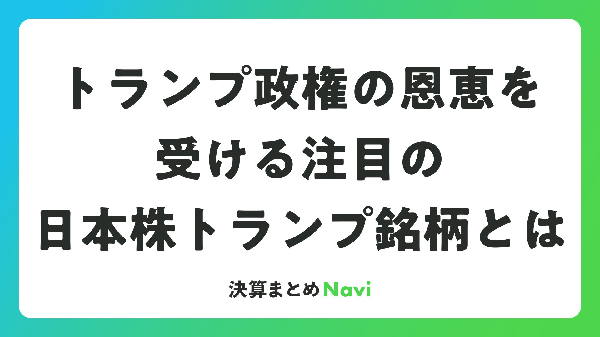 トランプ銘柄 日本株とは、トランプ政権の政策(関税、インフラ、エネルギー、住宅など)に直接的に連動し、ポジティブな影響を受ける日本上場企業を指します。選定基準として以下のポイントが挙げられます。
