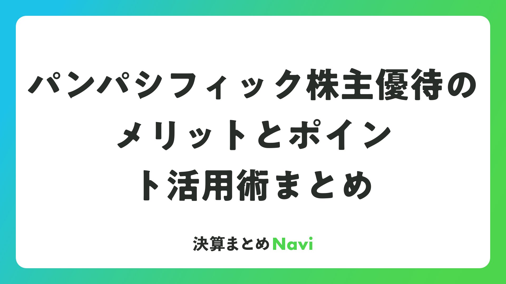 パンパシHDの優待は、単なる特典ではなく、資産運用のツールとして機能します。年2回のポイント獲得でキャッシュフローを改善し、再投資資金に回せます。ディフェンシブ株として暴落時のクッション材にもなり、ポートフォリオの分散に寄与。読者の皆さんが求める安定収益を追求するなら、必見の銘柄です。