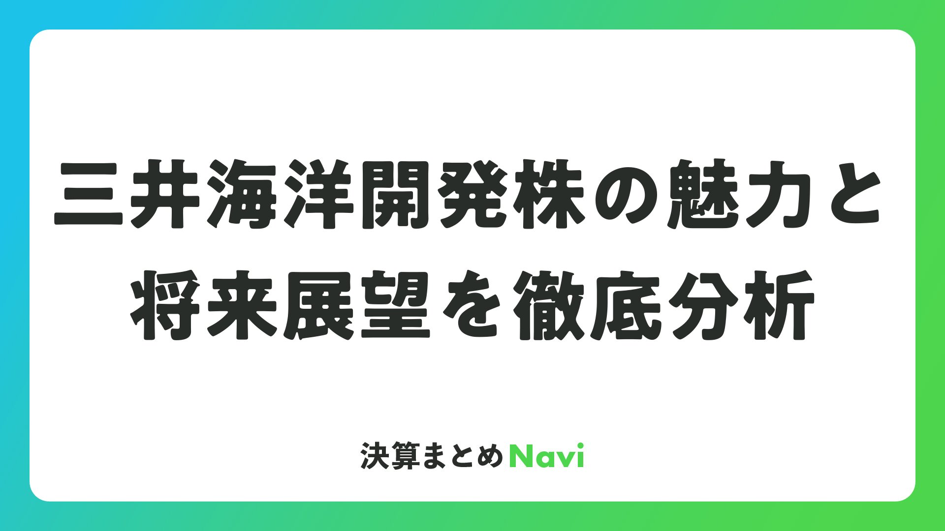 三井海洋開発株の魅力と将来展望を徹底分析をまとめました