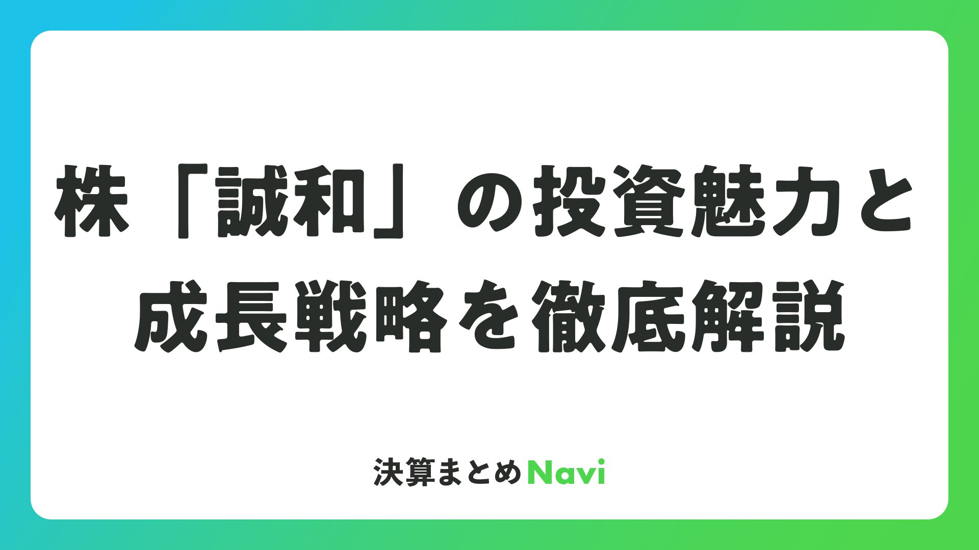 株「誠和」の投資魅力と成長戦略を徹底解説をまとめました