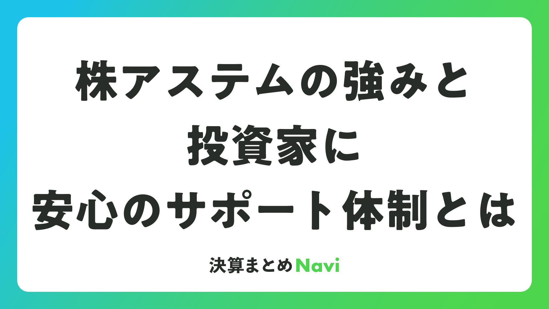 株アステムの強みと投資家に安心のサポート体制とはをまとめました