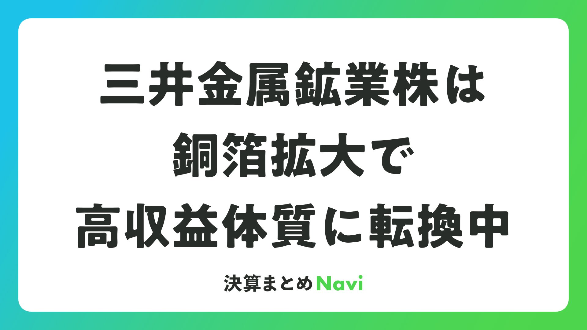 同社の強みは、高付加価値製品へのシフトです。例えば、銅箔をはじめとする電子材料は、AIサーバーやEV(電気自動車)向け需要が急増しており、世界的なシェアを拡大中です。これにより、従来の資源価格変動に左右されやすい事業構造から脱却し、高収益体質を築いています。投資家目線では、こうした事業転換が株価の基盤を固め、長期的な価値向上につながるポイントです。