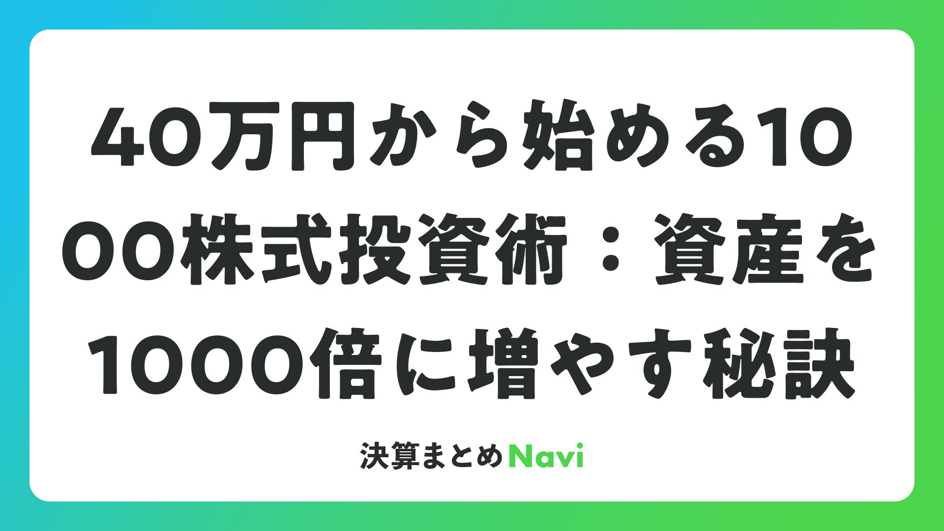 40万円から始める1000株式投資術:資産を1000倍に増やす秘訣をまとめました