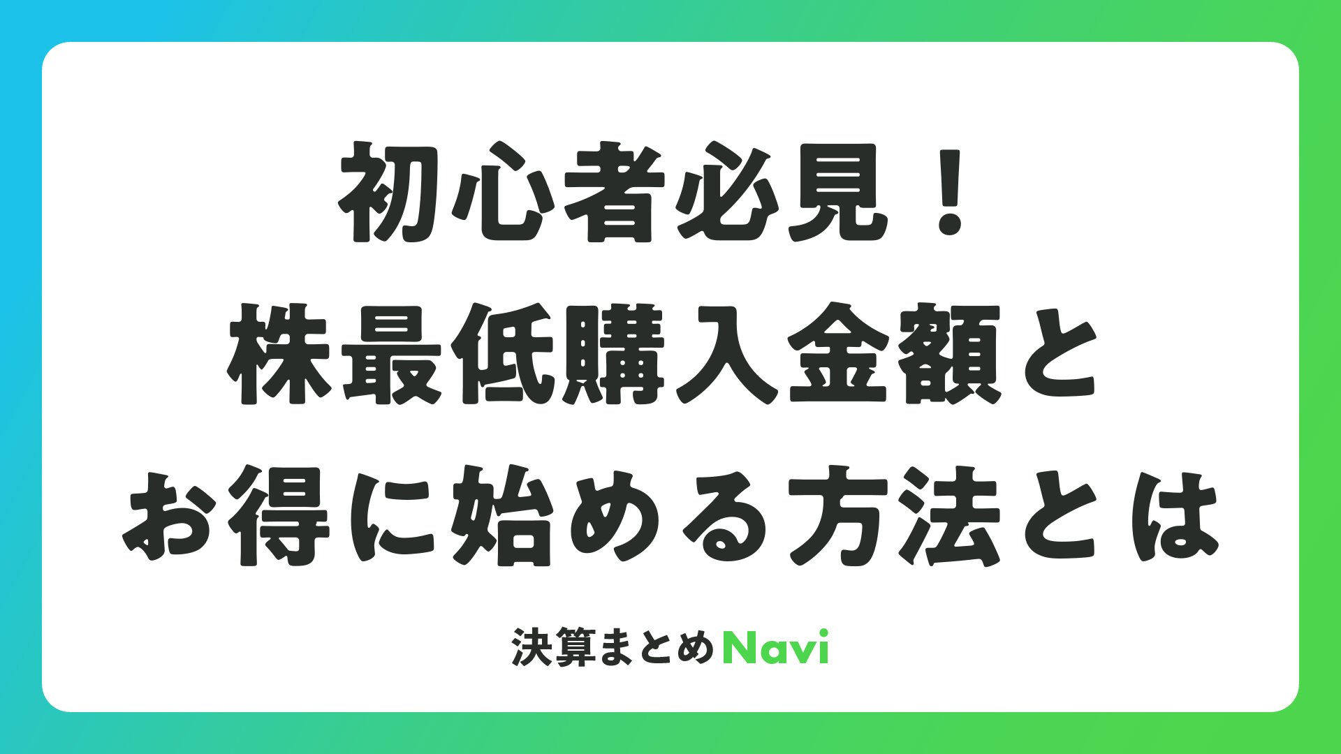 初心者必見!株最低購入金額とお得に始める方法とは