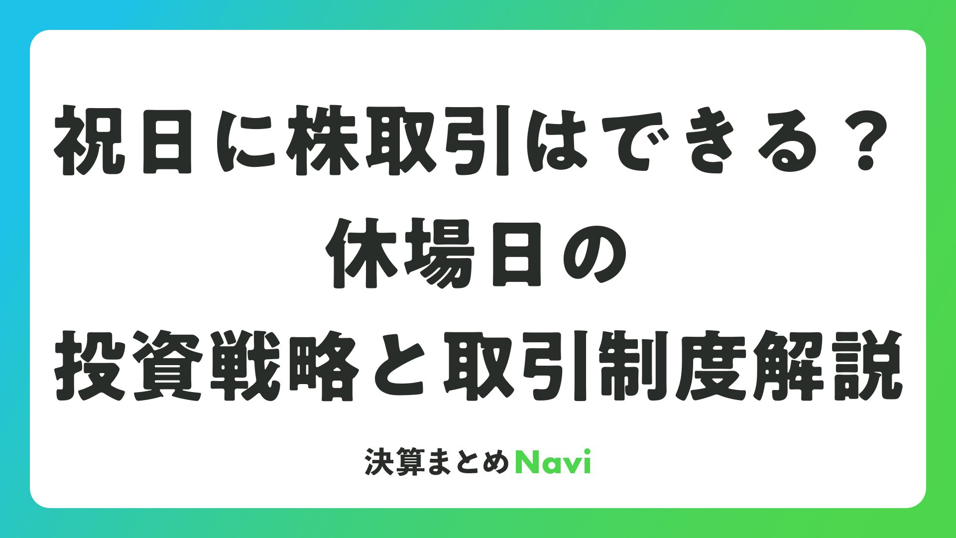 祝日に株取引はできる?休場日の投資戦略と取引制度解説をまとめました