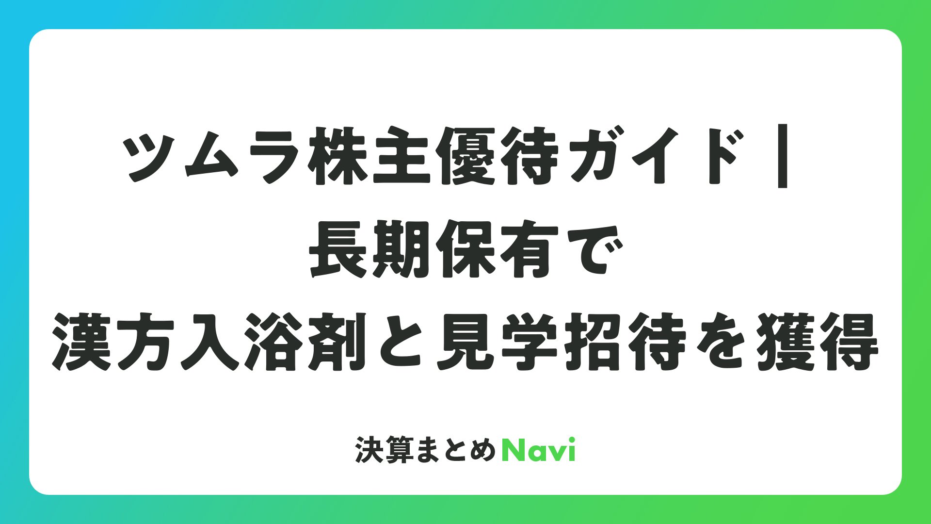 ツムラの株主優待は、100株以上3年継続保有で入浴剤「バスハーブ」と漢方記念館見学会招待を受け取れる、長期投資家に最適な制度です。配当利回り3.75%と合わせ、総合的なリターンが期待でき、漢方文化体験も魅力。9月末権利確定を活用し、安定運用を目指しましょう。