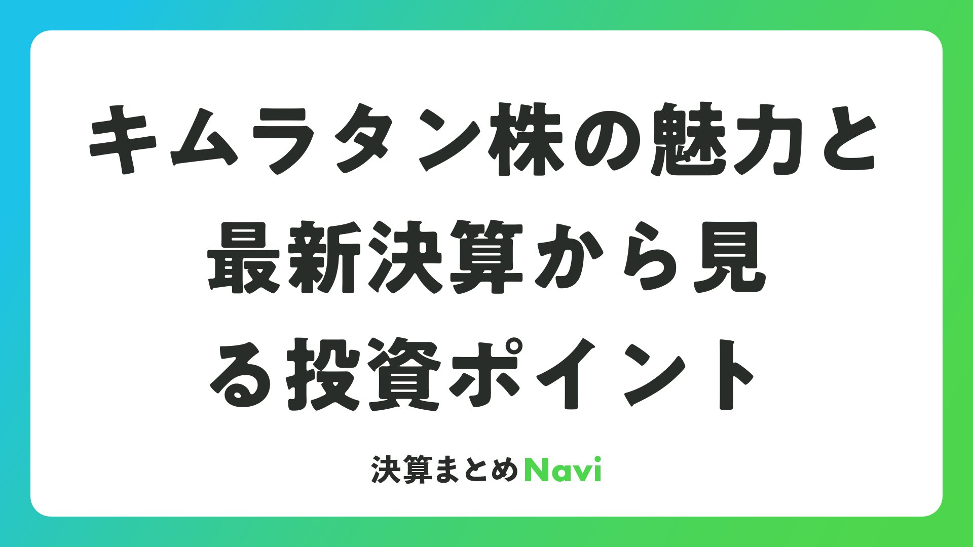 株式会社キムラタン(証券コード:8107)は、日用品や生活必需品を中心とした小売事業を展開する企業として、投資家から注目を集めています。最近の第3四半期決算や事業改善の動きから、株価の安定性と将来性が期待されており、長期投資の候補として魅力的です。この記事では、株式投資・資産運用メディアの読者の皆さまに、キムラタンの株に関する最新情報と投資ポイントを詳しく解説します。