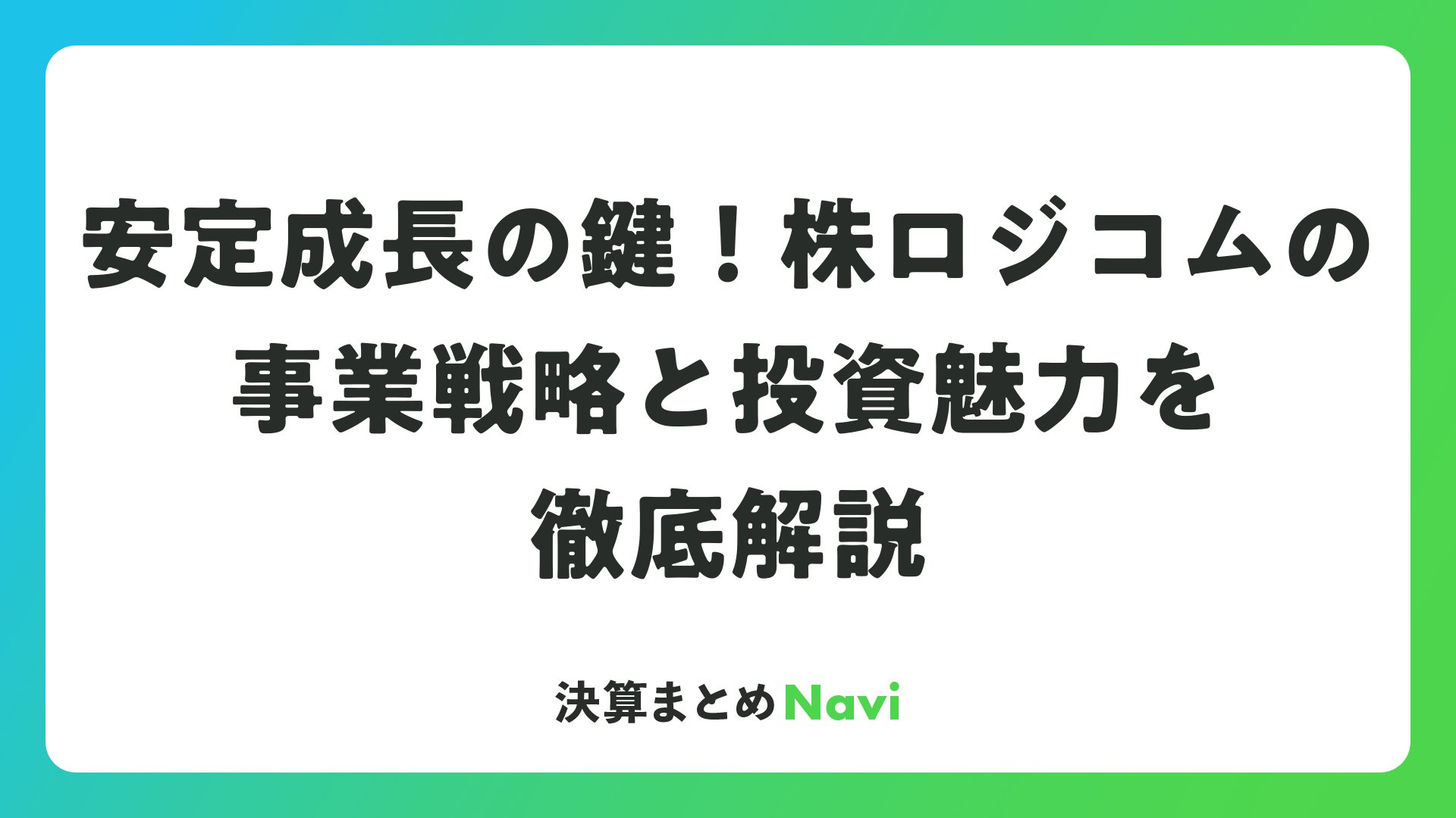 安定成長の鍵!株ロジコムの事業戦略と投資魅力を徹底解説をまとめました