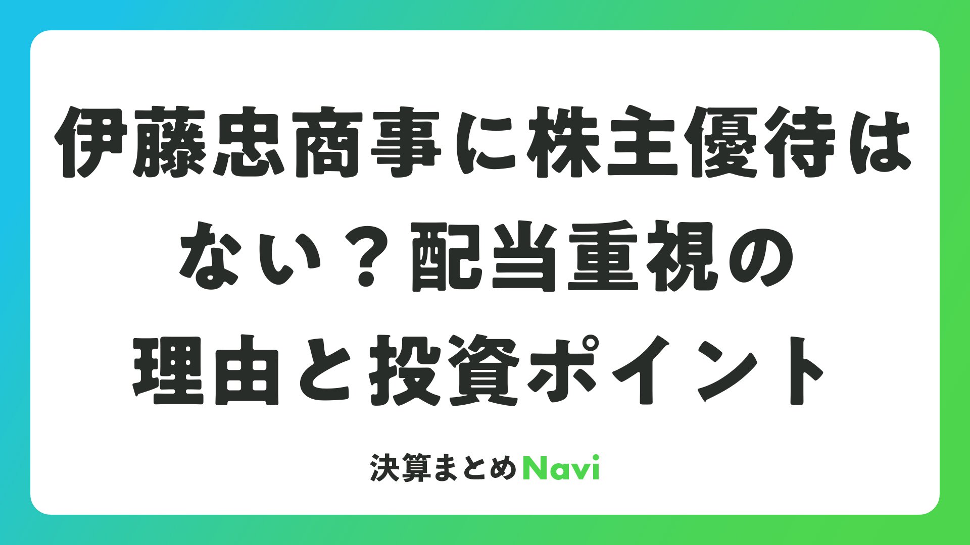 優待廃止の事例として、グループ会社の伊藤忠食品が挙げられますが、これはTOB(公開買い付け)による上場廃止見込みが背景にあり、伊藤忠商事本体とは異なります。親会社である伊藤忠商事は、安定した株主還元を継続中です。投資家にとって、優待がないことはデメリットではなく、むしろ純粋な事業価値に基づく投資機会を提供していると言えます。