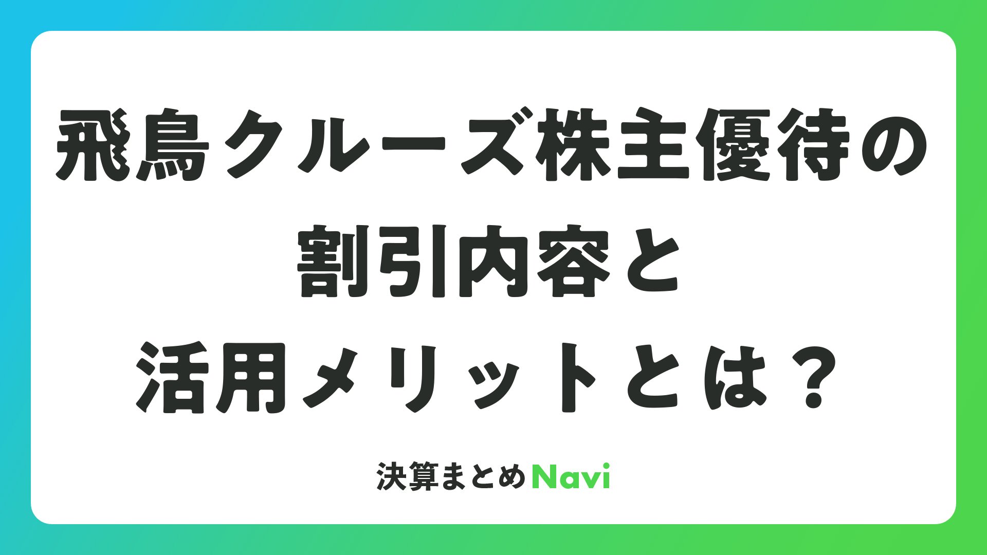 保有株数に応じた優待枚数、2025年10月以降の併用ルール、予約ステップを活用すれば、高額クルーズを低コストで満喫。海運株投資の醍醐味を、飛鳥クルーズで実感してください。株式投資の新たな楽しみ方として、ぜひ検討を。