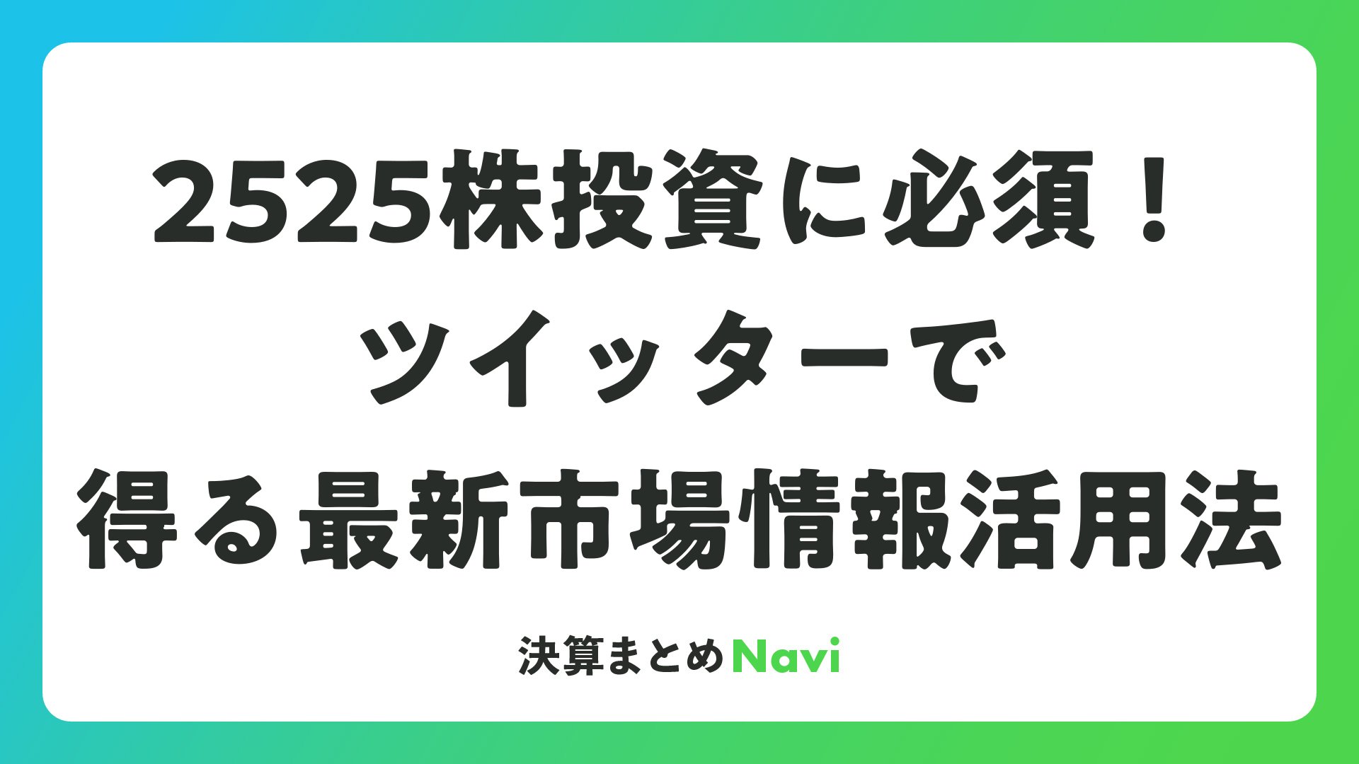 株式投資の世界では、情報収集が成功の鍵を握ります。特に2525株のような注目銘柄では、リアルタイムの市場動向を捉えることが重要です。そこで活用したいのがツイッター(現X)。このSNSは投資家たちの生の声が集まる場として、2525株の最新情報を素早く入手できる強力なツールです。本記事では、2525株に特化したツイッター活用術を徹底解説。読者の皆さんがより効果的な資産運用を実現するためのポジティブなヒントを満載してお届けします。