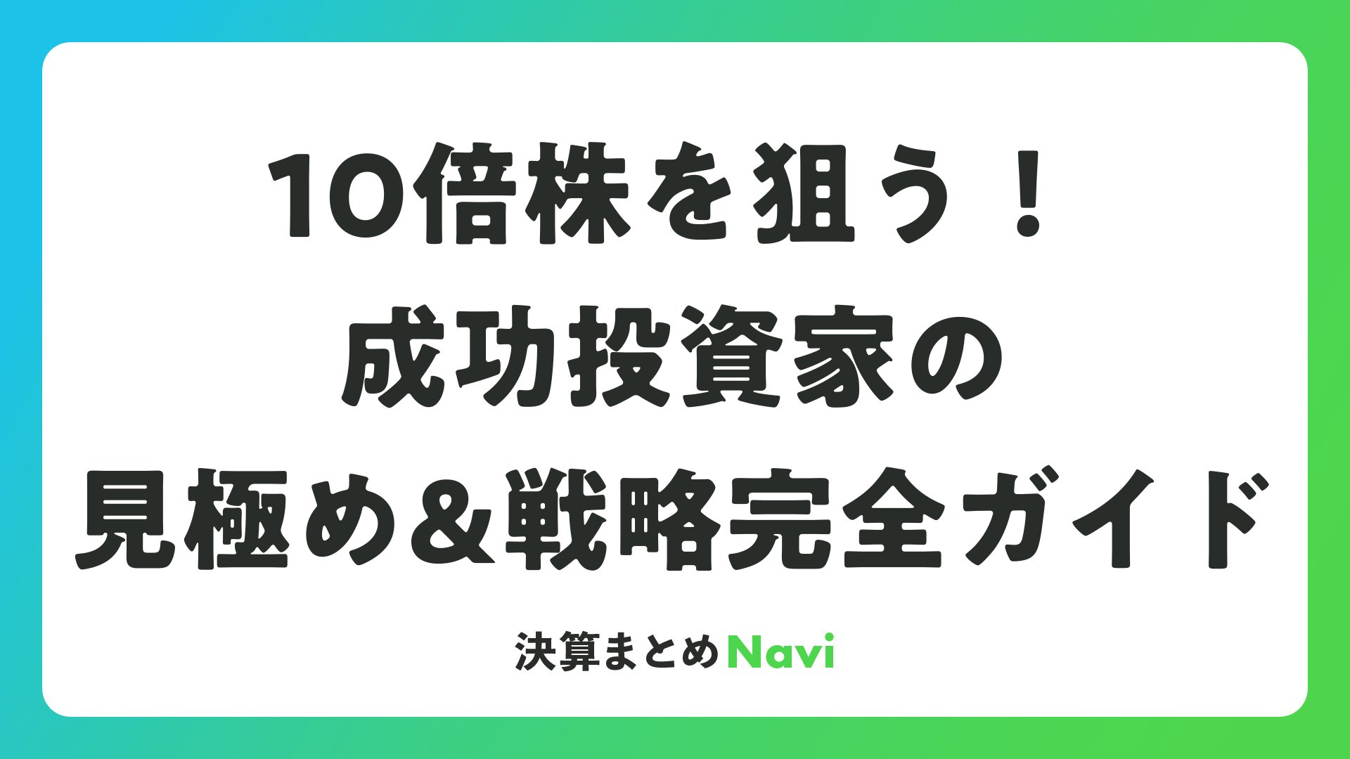 10倍株を狙う!成功投資家の見極め&戦略完全ガイド